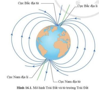 Dựa vào hình 16.1, em hãy cho biết cực Bắc Trái Đất và cực từ Bắc Trái Đất có trùng nhau không?