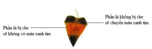 - Phần lá bị che sẽ không nhận được ánh sáng → Phần lá này sẽ không tiến hành quá trình quang hợp, không tạo ra được tinh bột → Khi nhỏ iodine, sẽ không cho màu xanh tím đặc trưng.