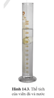 + Nhúng ngập viên đá vào nước trong ống đong, đọc giá trị thể tích V2 (hình 14.3).