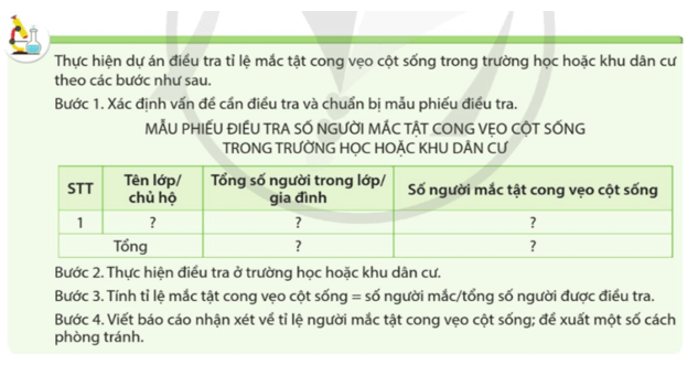 Thực hành 2 trang 142 KHTN 8: Thực hiện dự án điều tra tỉ lệ mắc bệnh sâu răng tại trường em đang học theo các bước điều tra ở bài 28, trang 135.