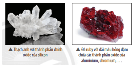 Mở đầu trang 56 Khoa học tự nhiên 8: Một số oxide phổ biến tạo nên các khoáng chất như đá granite và thạch anh (oxide của silicon), gỉ sắt (oxide của sắt) và đá vôi (oxide của calcium và carbon). Đá ruby tự nhiên có dải màu từ hồng đậm đến đỏ sẫm do thành phần các oxide của alumium, chromium, … tạo nên. Oxide là gì? Có những loại oxide nào? Chúng có sẵn trong tự nhiên hay phải điều chế?