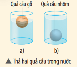 Luyện tập 2 trang 88 KHTN lớp 8: Hai quả cầu có thể tích bằng nhau, làm bằng gỗ và nhôm được thả vào nước. Giải thích vì sao quả cầu nhôm thì bị chìm, quả cầu gỗ lại nổi trong nước.