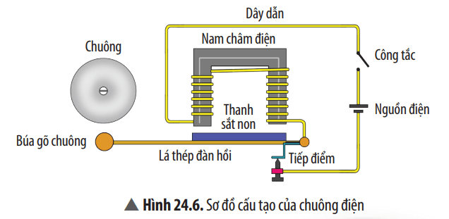 Câu hỏi thảo luận 6 trang 112 KHTN lớp 8: Quan sát Hình 24.6 và mô tả cách hoạt động của chuông điện.
