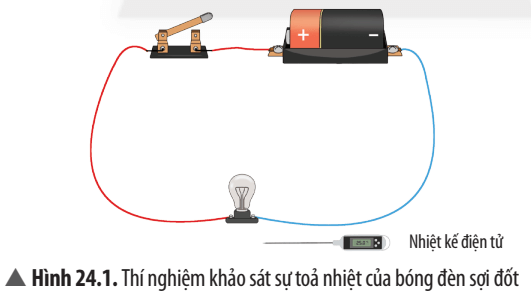 Câu hỏi thảo luận 1 trang 109 KHTN lớp 8: So sánh nhiệt độ của vỏ bóng đèn đo được trước và sau khi đóng công tắc trong thí nghiệm Hình 24.1. Giải thích kết quả thí nghiệm.