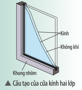 Cửa kính hai lớp có khả năng cách nhiệt tốt vì giữa hai lớp kính có lớp không khí mà không khí là chất dẫn nhiệt kém nên cách nhiệt tốt hơn.