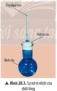 - Khi đặt bình cầu vào chậu nước ấm, mực nước trong ống thủy tinh dâng cao.