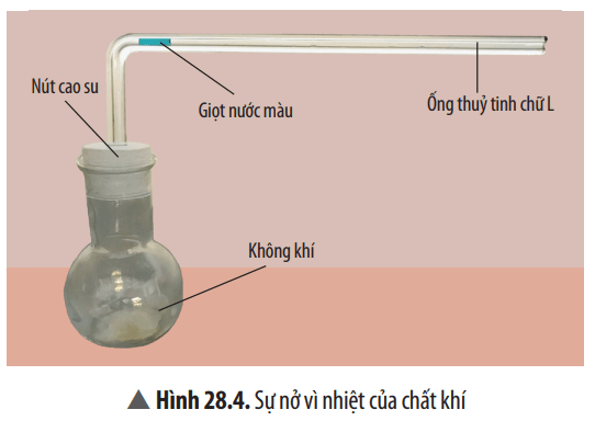 - Khi nhấc bình cầu ra khỏi chậu nước ấm và đặt bình cầu lên bàn, mực nước trong ống thủy tinh hạ thấp xuống về mực nước ban đầu.