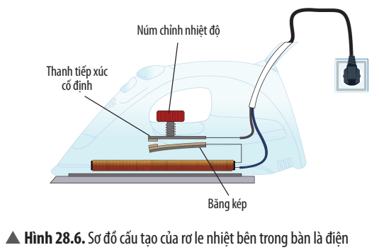 Vận dụng 2 trang 131 KHTN lớp 8: Giải thích cách hoạt động của rơ le nhiệt trong bàn là điện (Hình 28.6).