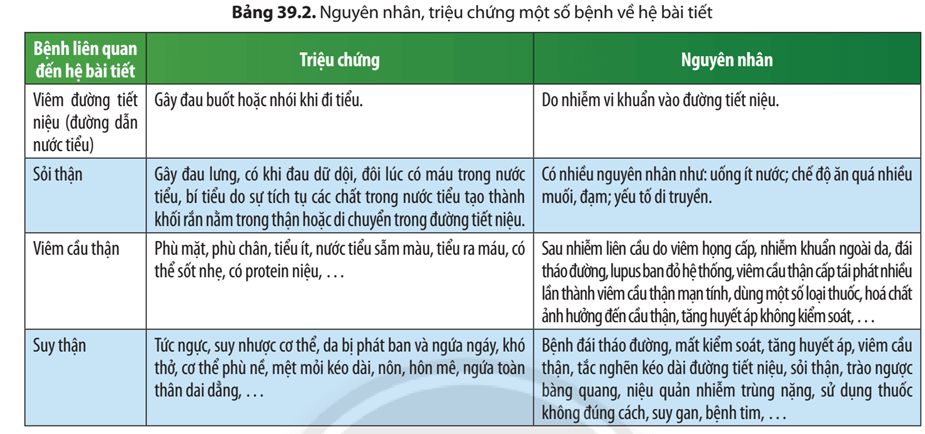 3. Một số bệnh về hệ bài tiết nước tiểu. Vận dụng hiểu biết về hệ bài tiết để bảo vệ sức khoẻ