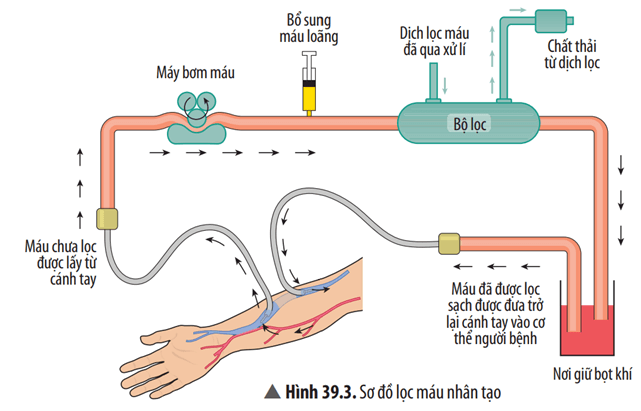 Câu hỏi thảo luận 8 trang 170 KHTN lớp 8: Quan sát Hình 39.3 và mô tả khái quát sơ đồ chạy thận nhân tạo.