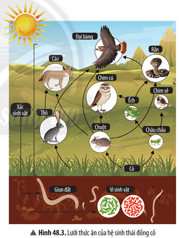- Cỏ → Chuột → Đại bàng → Giun đất/ Vi sinh vật.