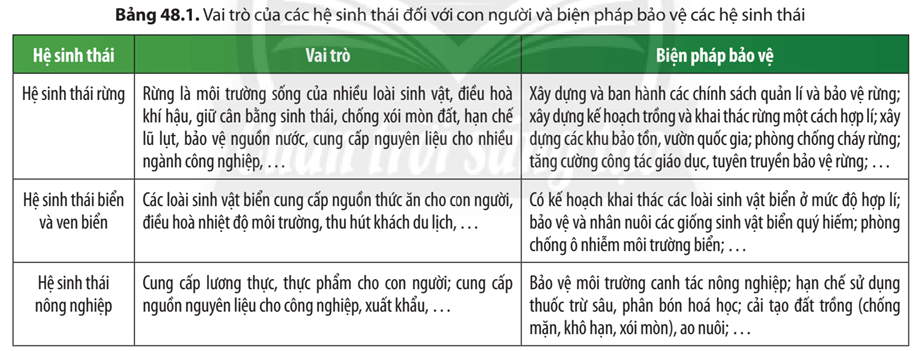 Câu hỏi thảo luận 6 trang 211 KHTN lớp 8: Tìm hiểu thông tin từ Bảng 48.1, em hãy cho biết tầm quan trọng của việc bảo vệ các hệ sinh thái.