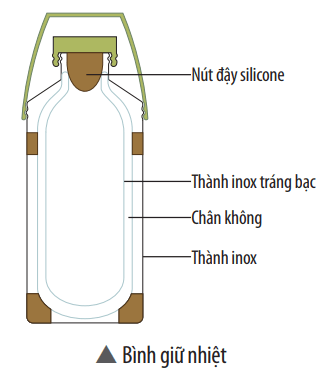Bài tập 3 trang 133 KHTN lớp 8: Mô tả cấu tạo của bình giữ nhiệt ở hình bên. Vì sao với cấu tạo như thế, bình có thể giữ được nước nóng trong thời gian dài?