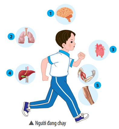- Khi chạy, hệ vận động tăng cường hoạt động dẫn đến hệ tuần hoàn cũng tăng cường hoạt động hơn để cung cấp đủ oxygen và các chất dinh dưỡng cho các cơ quan hoạt động; hoạt động của hệ hô hấp cũng tăng lên để đáp ứng nhu cầu trao đổi khí liên tục của cơ thể; da thuộc hệ bài tiết tăng cường tiết mồ hôi, giúp cơ thể điều hòa thân nhiệt; hệ thần kinh tăng cường hoạt động để điều khiển, điều hòa và phối hợp các hệ cơ quan nhằm thực hiện hoạt động chạy.