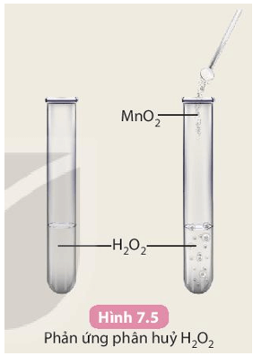 Chuẩn bị: nước oxy già (y tế) H2O2 3%, manganese dioxide (MnO2, dạng bột); ống nghiệm.