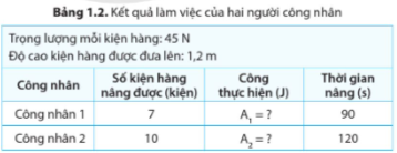 Luyện tập 2 trang 13 KHTN 9: Tính công suất của mỗi công nhân trong bảng 1.2