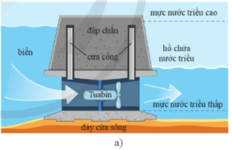 Tìm hiểu thêm trang 73 KHTN 9: Các nhà khoa học đang nghiên cứu và thử nghiệm việc sử dụng động năng của các dòng chảy, do sự chênh lệch độ cao giữa mực nước triều cao và mực nước triều thấp, để làm quay tuabin của các máy phát điện.