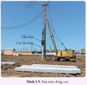 Vận dụng trang 16 KHTN 9: Trên công trường xây dựng, để đóng các cọc bê tông lún sâu xuống lòng đất, người ta dùng búa máy như hình 2.5. Đầu búa có trọng lượng lớn được kéo lên một độ cao nhất định so với mặt đất rồi thả rơi xuống đập vào cọc bê tông.