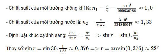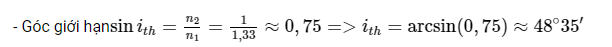 Truyền từ nước ra không khí => n1 = n = 1,33; n2 = 1