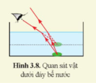 Luyện tập 4 trang 23 KHTN 9: Khi ta quan sát một vật ở dưới đáy bể nước (hình 3.8), ta có cảm giác vật và đáy bể ở gần mặt nước hơn so với thực tế. Em hãy giải thích hiện tượng này.