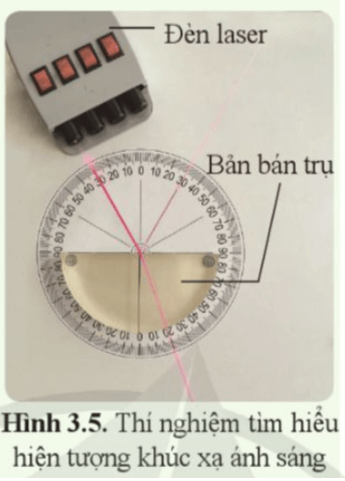 Thí nghiệm trang 19 KHTN 9: Quan sát và mô tả bằng hình vẽ đường truyền của tia sáng khi đi từ không khí vào bản bán trụ. Rút ra nhận xét.