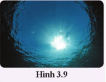 Vận dụng trang 23 KHTN 9: Khi người thợ lặn dưới nước nhìn lên trên chỉ thấy có một vùng hình tròn sáng ở mặt nước, phía ngoài vùng đó bị tối đen mặc dù bên trên không có vật che sáng (hình 3.9) Em hãy giải thích hiện tượng này.