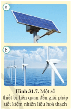 Việc sử dụng các thiết bị ở hình 31.7 là năng lượng mặt trời, năng lượng gió có giúp tiết kiệm được nhiên liệu hoá thạch vì các nguồn năng lượng này là năng lượng sạch và không phát thải khí gây ô nhiễm.