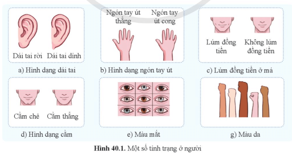 Câu hỏi 1 trang 192 KHTN 9: Dựa vào hình 40.1, mô tả một số tính trạng của bản thân và những người xung quanh.