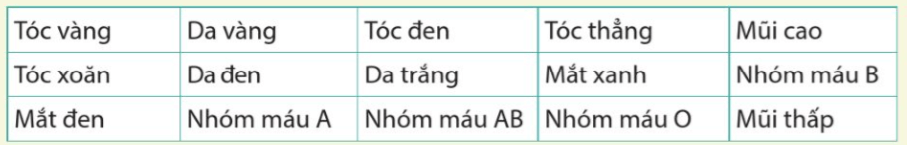Luyện tập 1 trang 193 KHTN 9: Quan sát bảng 40.1, hãy xếp thành nhóm các kiểu hình của cùng một tính trạng với nhau.