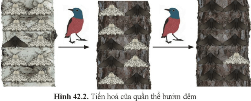 Câu hỏi 1 trang 200 KHTN 9: Quan sát hình 42.2, cho biết sự thay đổi tỉ lệ cá thể bướm màu sáng và màu tối ở quần thể bướm đêm.