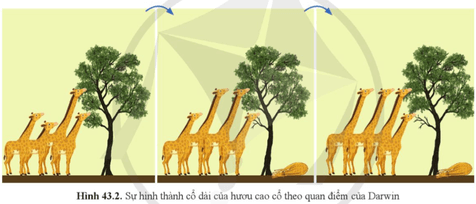 Câu hỏi 2 trang 205 KHTN 9: Quan sát hình 43.2, mô tả quá trình hình thành cổ dài của hươu cao cổ theo quan điểm của Darwin.
