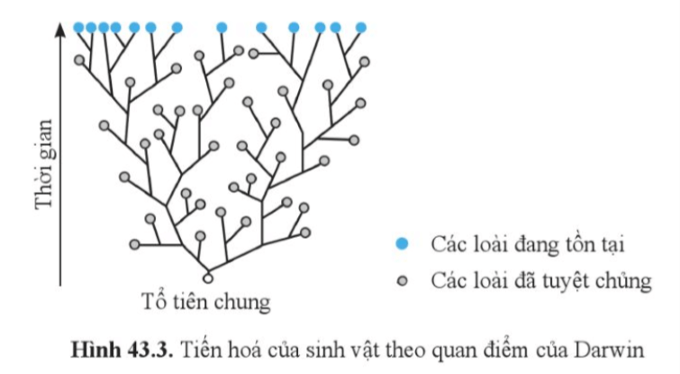 Câu hỏi 3 trang 205 KHTN 9: Dựa vào hình 43.3, cho biết Darwin giải thích như thế nào về sự đa dạng của sinh giới và nguồn gốc sinh vật.