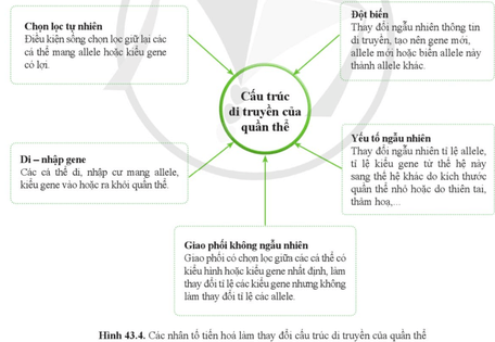 Câu hỏi 4 trang 206 KHTN 9: Quan sát hình 43.4 và nêu ảnh hưởng của các nhân tố tiến hóa đối với tỉ lệ allele của quần thể.