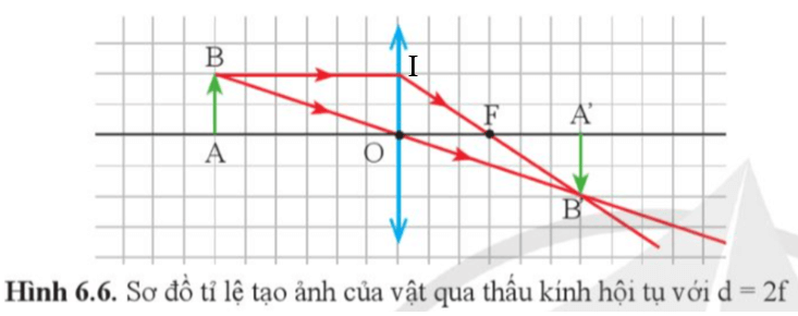 Ta có: OF = 3 cm; AB = 2 cm; OA = 6 cm = 2.OF hay d = 2f