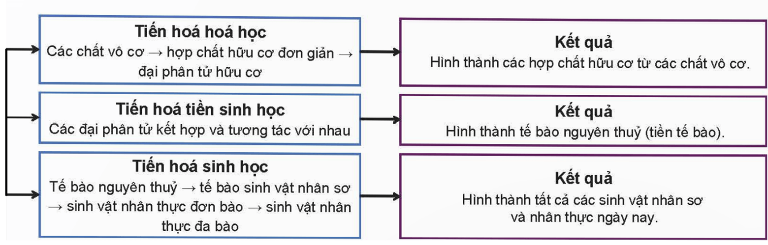 Sơ đồ tóm tắt đặc điểm các giai đoạn phát triển sự sống trên Trái Đất: