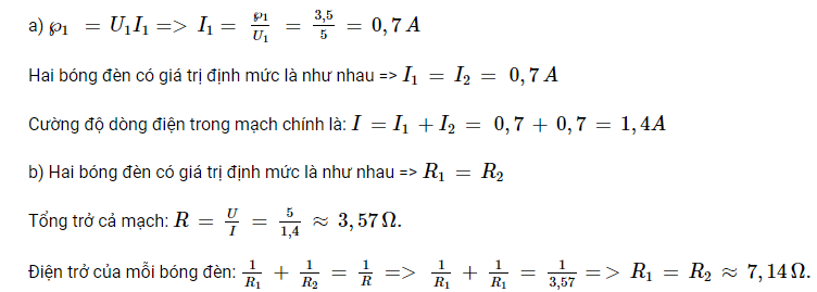 a) Tính điện trở tương đương của đoạn mạch gồm hai đèn.