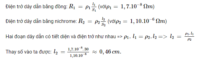 Bài 3 trang 56 KHTN 9: Có hai đoạn dây dẫn có tiết diện và điện trở như nhau, một đoạn dây dẫn đồng, một đoạn dây dẫn nichrome. Đoạn dây dẫn nichrome có chiều dài 30 cm.