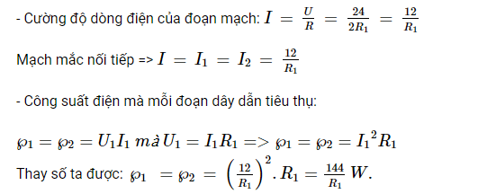 b) Người ta mắc nối tiếp hai dây dẫn này vào một nguồn điện 24 V. Tính công suất điện mà mỗi đoạn dây dẫn tiêu thụ.