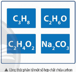 Mở đầu trang 90 Bài 20 KHTN 9: Hình bên là công thức phân tử của một số hợp chất chứa carbon, gồm hợp chất hữu cơ và hợp chất vô cơ. Dựa vào thành phần nguyên tố, ta có nhận biết được các hợp chất hữu cơ không? Hợp chất hữu cơ là gì? Chúng gồm những loại nào?