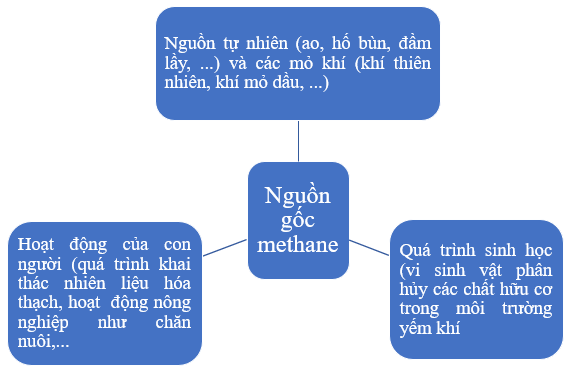 Câu hỏi củng cố trang 146 KHTN 9: Hãy sử dụng sơ đồ tư duy để tóm tắt lại nguồn gốc của methane.