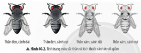 Hình thành kiến thức mới 2 trang 169 KHTN 9: Đọc đoạn thông tin và quan sát Hình 40.2, hãy cho biết cơ sở nào dẫn đến sự khác nhau về kiểu hình ở các cá thể ruồi giấm.