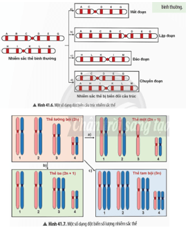 Hình thành kiến thức mới 6 trang 173 KHTN 9: Quan sát Hình 41.6 và 41.7, em hãy nhận xét về những biến đổi của nhiễm sắc thể đột biến so với nhiễm sắc thể bình thường.