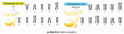 - Về đặc điểm di truyền: ở giống chuối 2n có 22 nhiễm sắc thể, nhiễm sắc thể tồn tại thành từng cặp tương đồng; ở giống chuối 3n có 33 nhiễm sắc thể, mỗi cặp nhiễm sắc thể tương đồng có thêm một chiếc.