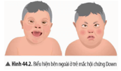 Hình thành kiến thức mới 4 trang 186 KHTN 9: Đọc thông tin và quan sát Hình 44.2, xác định các đặc điểm có thể sử dụng để nhận biết bệnh nhân mắc hội chứng Down.
