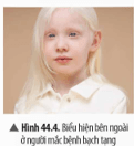 Hình thành kiến thức mới 6 trang 187 KHTN 9: Quan sát Hình 44.4, hãy cho biết biểu hiện bên ngoài ở người mắc bệnh bạch tạng có gì khác so với người bình thường.