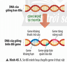 Hình thành kiến thức mới 1 trang 190 KHTN 9: Quan sát Hình 45.1 và đọc thông tin ở Bảng 45.1, hãy cho biết giống cây trồng biến đổi gene có những đặc tính vượt trội nào so với giống ban đầu.