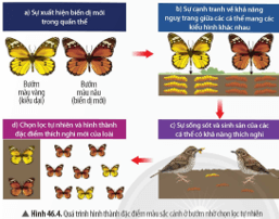 Hình thành kiến thức mới 6 trang 201 KHTN 9: Quan sát Hình 46.4, hãy mô tả quá trình chọn lọc tự nhiên trong sự hình thành đặc điểm thích nghi ở bướm.