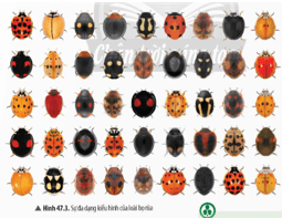 Hình thành kiến thức mới 5 trang 205 KHTN 9: Quan sát Hình 47.3 và đọc thông tin trong bài, em hãy cho biết cơ chế tạo ra sự đa dạng về kiểu hình ở loài bọ rùa.