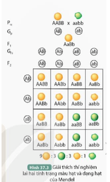 2. Khi xét riêng sự di truyền của từng tính trạng (màu hạt, dạng hạt), tỉ lệ kiểu hình của mỗi tính trạng là 3 : 1, vẫn đúng với quy luật phân li. Do đó, sự di truyền của mỗi tính trạng tuân theo quy luật phân li, di truyền độc lập, không phụ thuộc vào nhau.