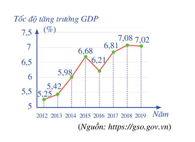 Bài tập 2: Biểu đồ đoạn thẳng ở Hình 3 biểu diễn tốc độ tăng trưởng GDP của Việt Nam giai đoạn 2012 – 2019.